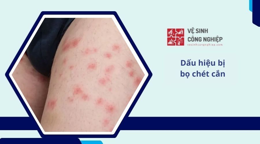 - Vết cắn trên da: Các chấm đỏ nhỏ li ti, thường xuất hiện thành cụm hoặc hàng thẳng ở vùng cổ chân, bàn chân.